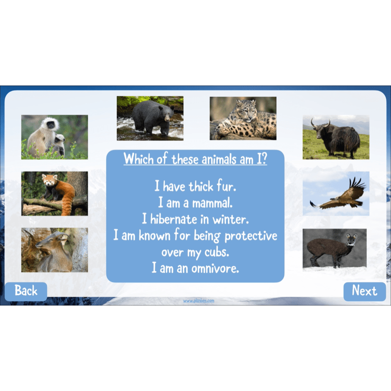Find out how mountain animals have adapted to their unique environment as your class learn what physical adaptations are and how they help animals to survive in the harsh mountain environments.