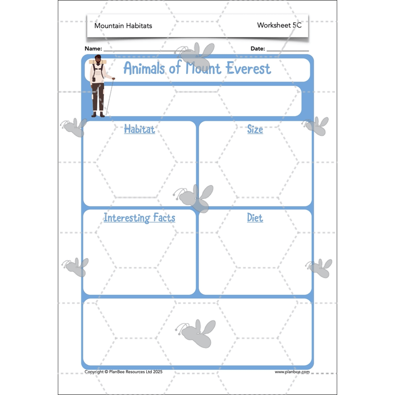 Take your Upper KS2 class on a high-altitude adventure with this exciting Mountain Habitats science scheme of work. Through five engaging and fully resourced lessons, children will explore the unique plants and animals that live in some of the world’s most extreme environments. From the icy slopes of Mount Everest to the rugged terrain of Ben Nevis, pupils will develop their understanding of food chains, classification, adaptation and life cycles; all through the lens of mountainous ecosystems.