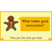 This Gingerbread Man Following Instructions lesson pack for KS1 challenges your Year 1 children to give and follow instructions. Children will take a closer look at how the Little Old Lady made the Gingerbread Man and discuss how instructions can appear in different forms, such as recipes. Children will also think about how instructions can be given verbally. They will have a go at giving verbal instructions to a partner and consider how successful these instructions were.