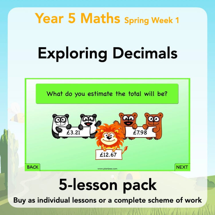 With lesson plans, slides, activity ideas, differentiated worksheets and more, these Year 5 'Exploring Decimals' lessons provide you with all you need to teach decimals in an engaging way (with the help of some funny animal characters!).