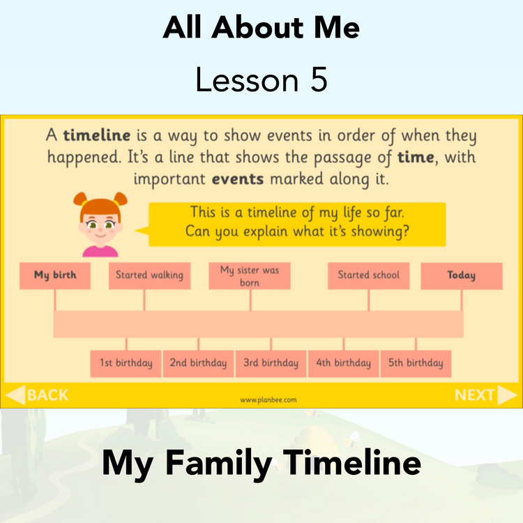 After looking at some examples together, children can then create their own family timelines by ordering key events in their family's history chronologically. Alternatively, they can sort statements into true or false piles based on the faily timelines provided to assess their understanding.