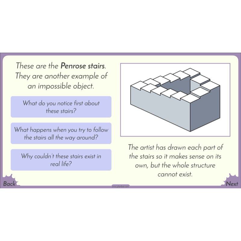 In this lesson, children explore how artists deliberately break the rules of perspective to create impossible images and visual illusions.