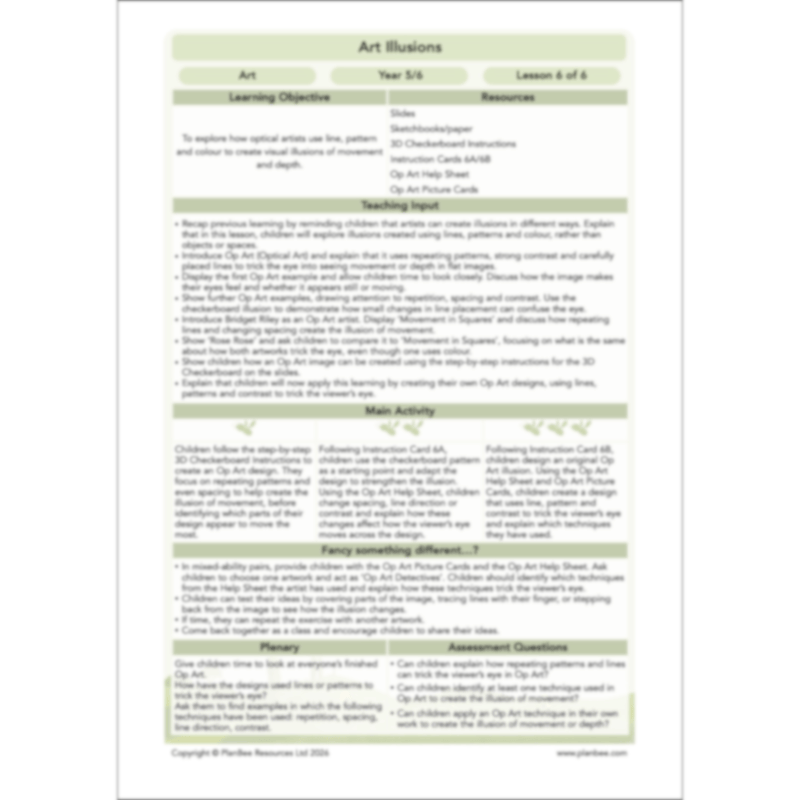 This downloadable Op Art KS2 Art lesson includes a detailed plan, a set of informative PDF slides, differentiated activity ideas and printable resources.