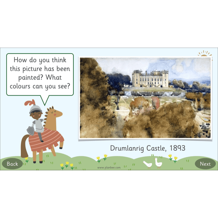 Your class will develop their use of colour when recreating watercolour castles in the style of James Paterson, and will look closely at the watercolour painting of Drumlanrig Castle.