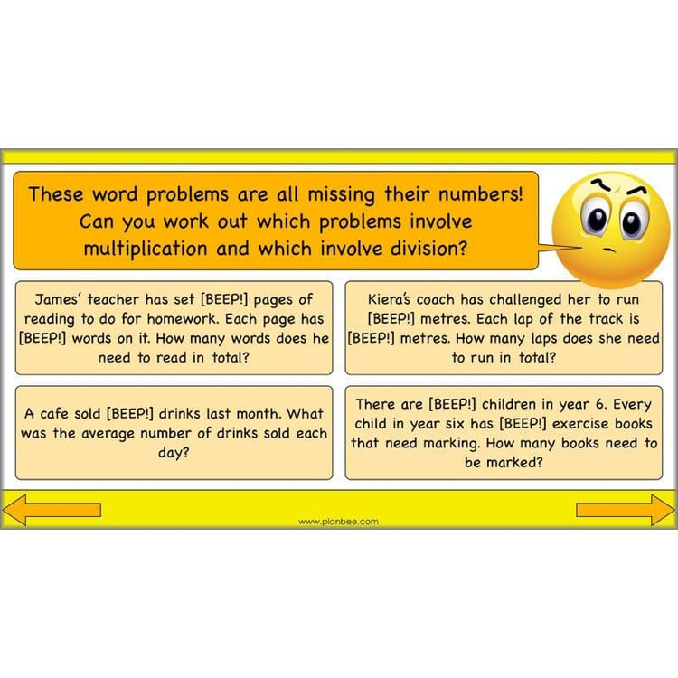Let’s improve our problem-solving skills! Challenge children to carefully read word problems and determine what sort of calculations (multiplication or division) are required to solve them. Some of the two-step problems are really challenging: children will have to select multiplication and division methods to solve these!