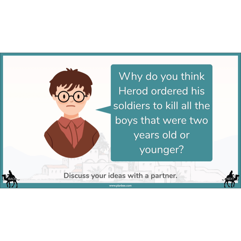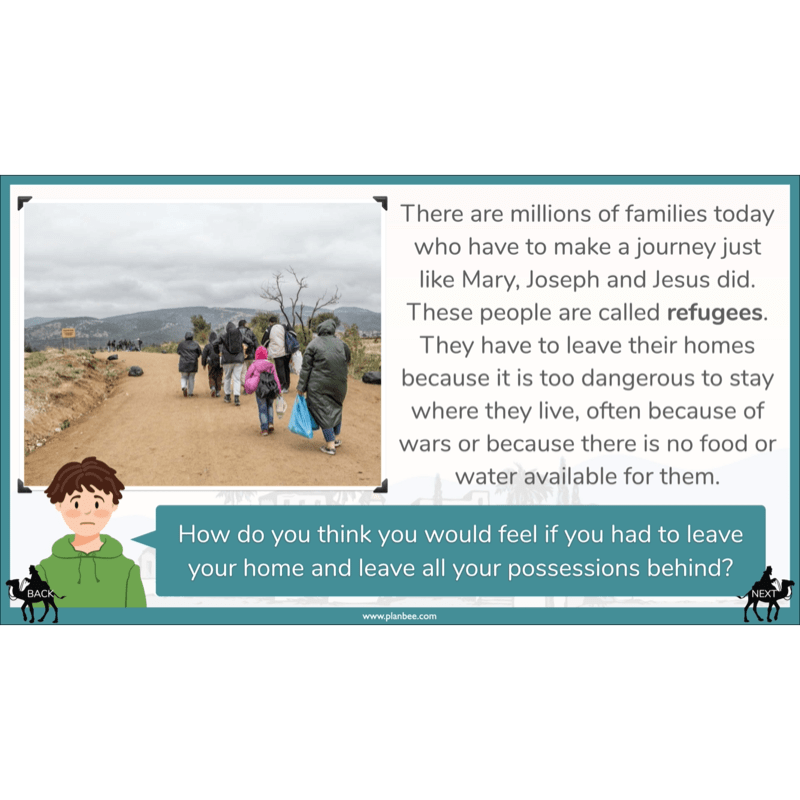 The final lesson in this Christmas Journeys series explores the role of King Herod in the nativity story and explores the emotions behind this hated character. It then looks at Jesus, Mary and Joseph's long journey into Egypt, and how this young family would have been feeling at this time. This is then linked to refugees today and encourages your KS2 class to think about people who have to flee their homes because of war or persecution.