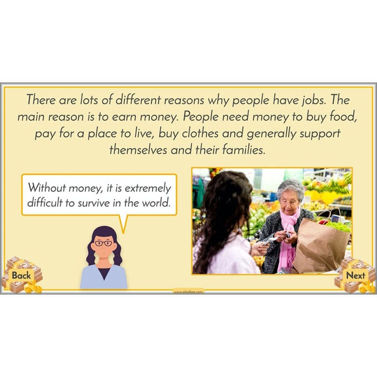 This lesson explores some of the reasons why some adults do not work, including retirement, before looking more closely at unemployment. Your children will find out some of the reasons for unemployment and think about why unemployment can be difficult for the person and their family.