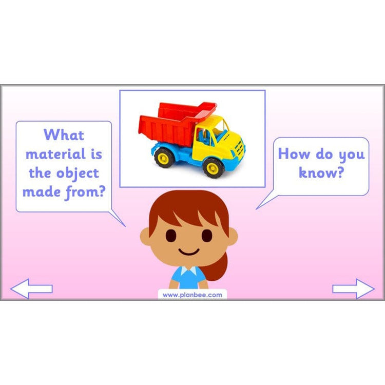 This sorting materials year 1 Science lesson encourages your class to distinguish between an object and the material it is made from. Your class will have plenty of opportunities to identify materials and objects and they will soon be dab hands at grouping objects according to their material. Your class will be challenged to describe the materials different objects are made from as they undertake their independent activities.