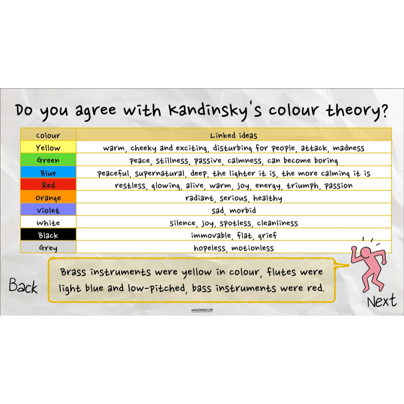 Discover how many different artists have used colour to express themselves through their artwork. Create a discussion with your class over their personal responses to artworks by Picasso, Kandinsky and Munch and how the colours have been used to influence these responses.