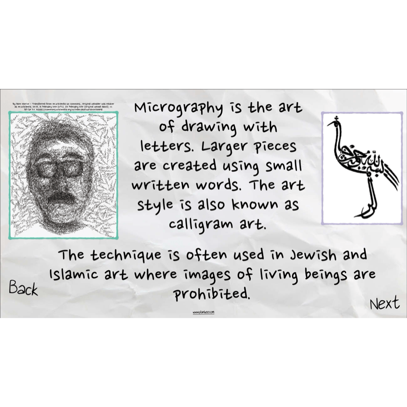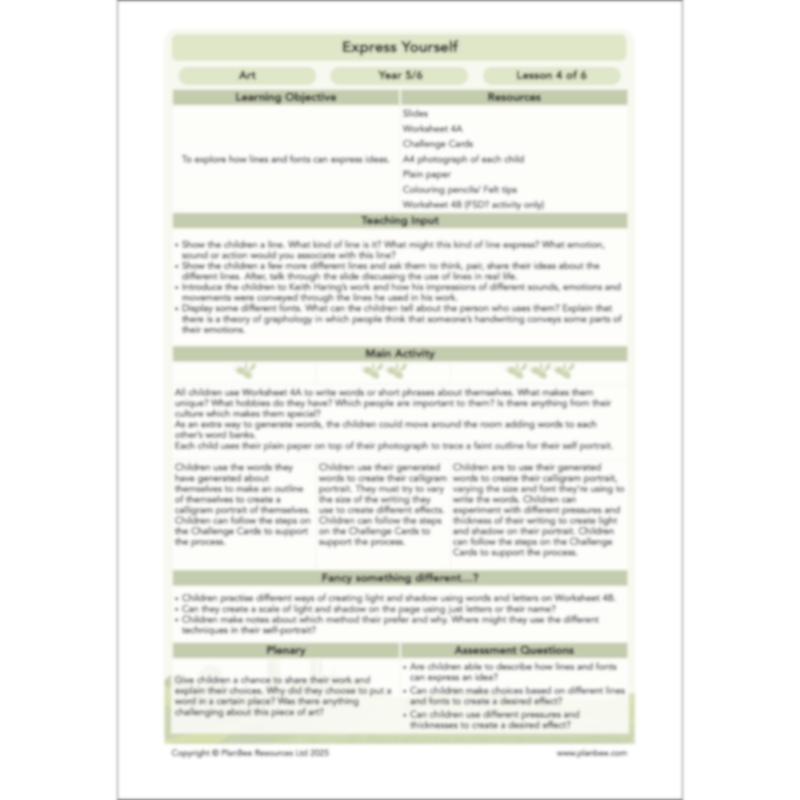 Give your class the chance to explore lines and fonts whilst looking into the artwork of Keith Haring. Discover how the style of a line can express a lot within a piece of artwork and discuss why the children think Haring chose his style of lines. Consolidate the children’s learning by creating stunning calligram self-portraits; a brilliant way for the children to express themselves.