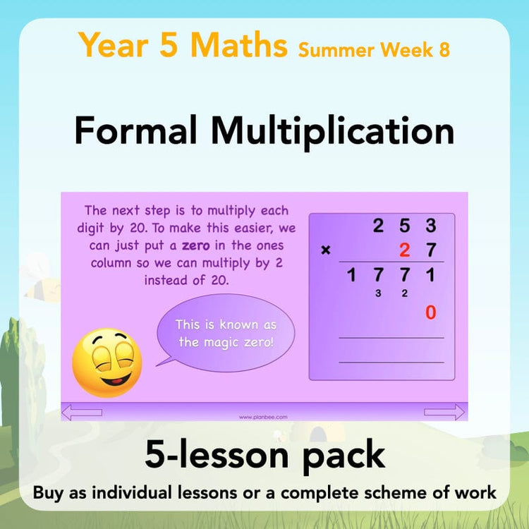 These challenging 'Formal Multiplication' lessons for Year 5 are packed full of strategies and resources to help children learn to solve multiplication calculations. They will use the grid method, expanded method, and both short and long multiplication to solve increasingly challenging multiplication problems, relating the methods to one another to spot similarities and differences. There are lots of fun activities and investigations to keep them engaged too!