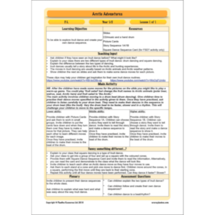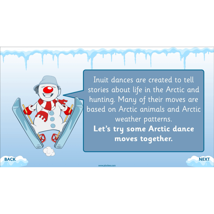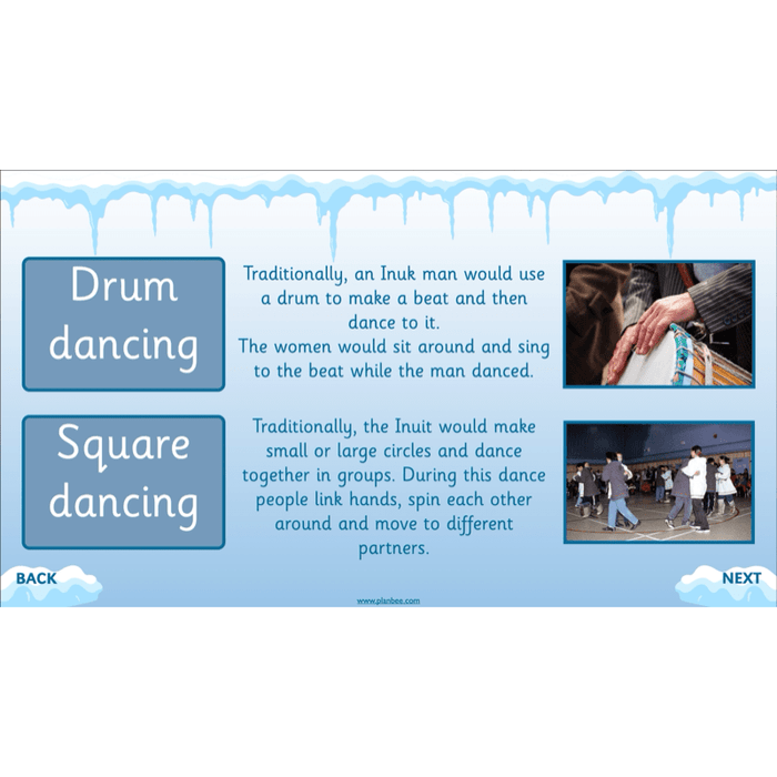 Children will get their rhythm on in this lesson as they attempt to perform traditional Inuit dances! Your class will learn about drum dancing and its importance to the Inuit culture. They will also look at square dancing and how it is different to drum dancing. They will have the opportunity to compose their own dance sequence using different movements and body formations, and will begin to tell a story through dance, performing their moves to a given beat or tempo.
