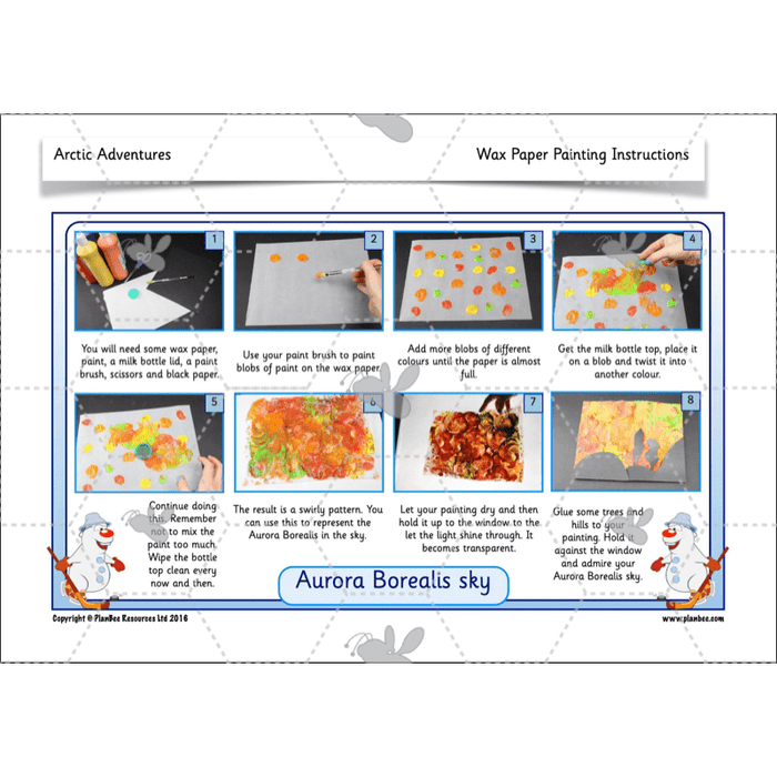 Amaze your class with the colours and sights of the Northern Lights (Aurora Borealis). Your children will learn about what the Aurora Borealis is and see images of the different colours and formations they make. Watch your children create lovely chalk pastel Aurora Borealis pictures using stencils and cotton buds. There is even an opportunity for your children to make swirly wax paper paintings to represent the Aurora Borealis.