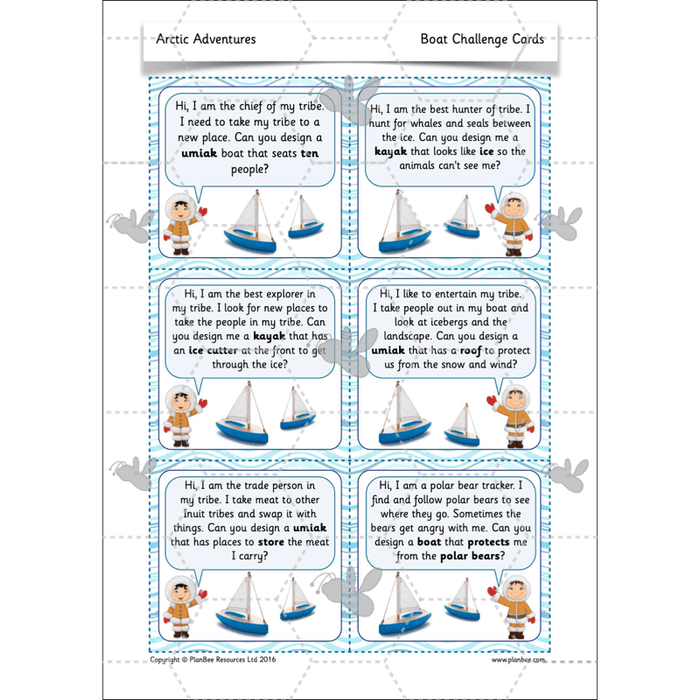This lesson introduces your class to the importance of boats for the Inuit and the different styles of boats they use. Your children will explore the difference between a Kayak and a Umiak and will explore features of boats. They will then design, make, test and evaluate their own Inuit boat and be able to record their ideas in a design booklet.