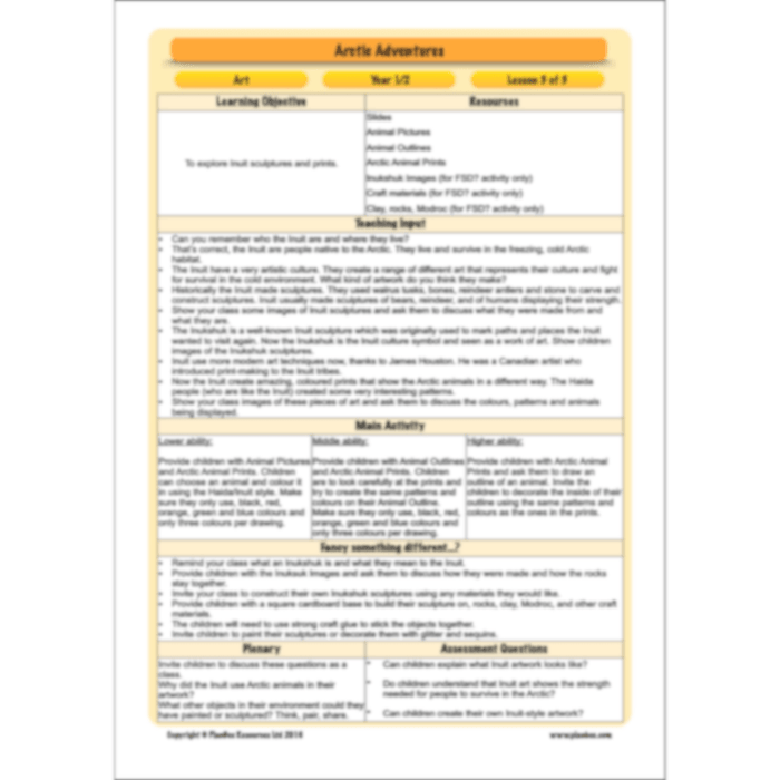 This Inuit Art KS1 lesson pack is ready-to-download and includes a plan, a set of PDF slides for the teaching input, differentiated activity ideas and printable resources.