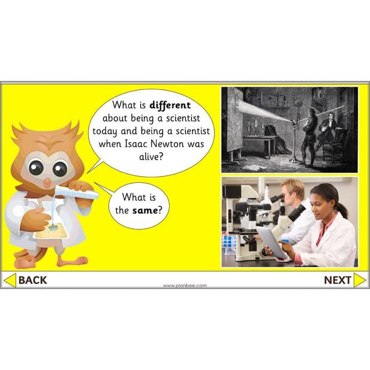 To get your class thinking about how science and scientific enquiry has changed since the 17th century, this lesson begins by asking your class to compare a picture of Isaac Newton and modern scientists undertaking experiments. Your children will be challenged to identify similarities and differences in greater detail, making connections and drawing contrasts.