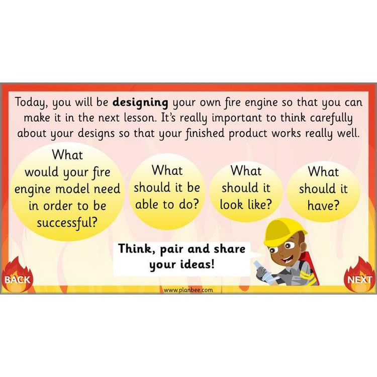Get your children excited about fire engines with this fun ‘Making Fire Engines’ DT scheme of work for KS1. Your class will explore modern fire engines and their features, before exploring, designing, creating and evaluating their own model fire engine using wheels, axles and chassis. There’s the option to look at 17th century fire engines too as part of a ‘Great Fire of London’ topic. Containing lesson plans, presentations and printable resources, these fun and engaging lessons are pre-prepared so you can get on with teaching and your class can get on with learning!