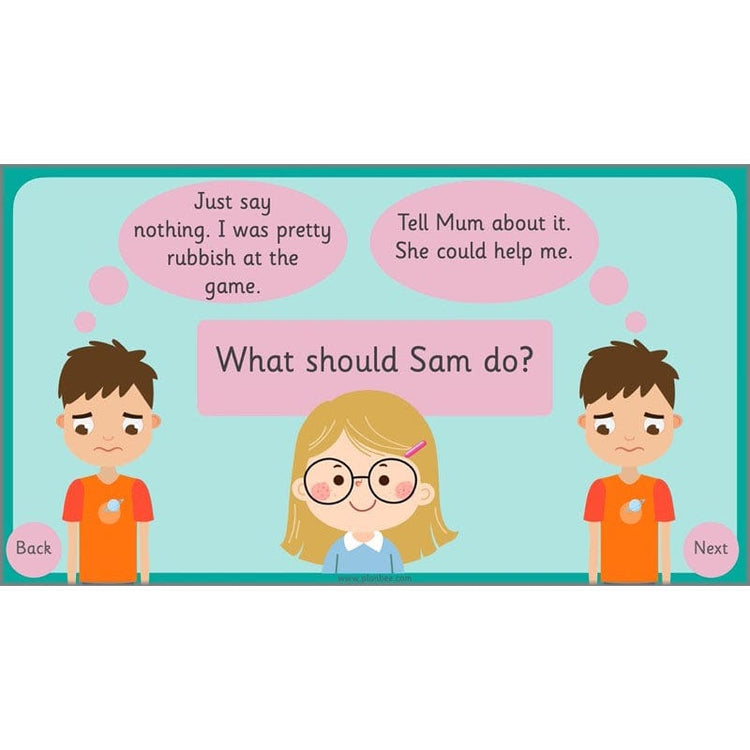 They look at various scenarios and decide whether the hurtful behaviour has caused emotional and/or physical pain. They explore this further in the main activity. At the end of the lesson, children explore how the occasional falling out between friends is different to the intentional, regular targeting of an individual associated with bullying. Children discuss what they would do if they saw someone being bullied.