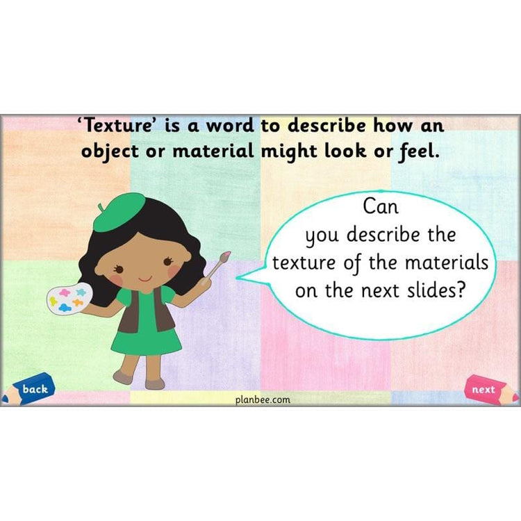 In this penultimate lesson, children will be introduced to the term ‘texture’ and will learn how to describe texture using adjectives. After which, children will learn how to create rubbings using materials and different mediums.