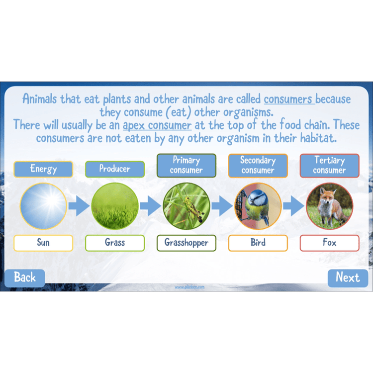 This lesson challenges your children to construct their own food chains or webs using the printable resources provided. The lesson also comes with a detailed lesson plan with differentiated activity ideas as well as PDF lesson slides. You'll have all you need to teach your upper KS2 class about who eats whom!