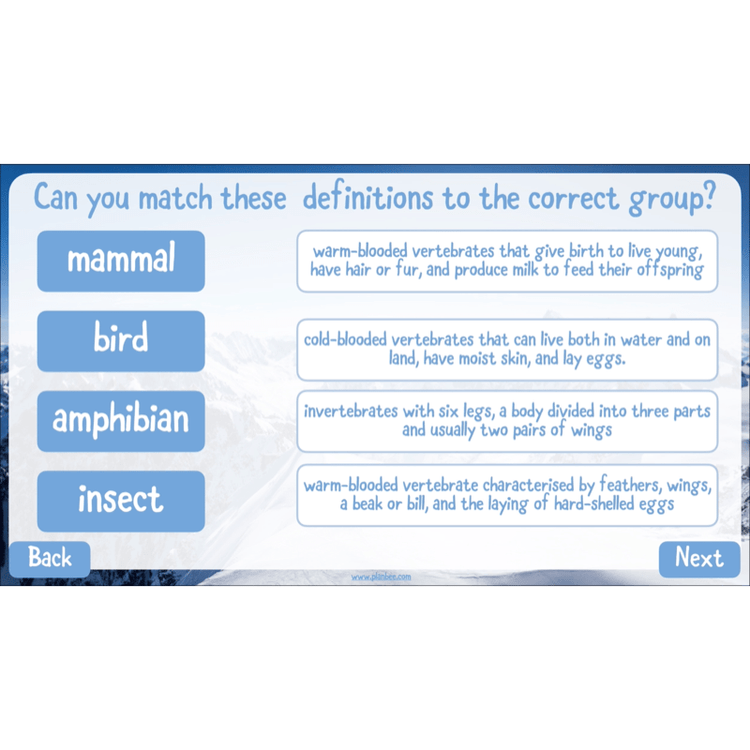 Each lesson is carefully designed to build scientific knowledge and vocabulary while encouraging enquiry, observation and discussion. Children will learn how energy flows through food webs, classify animals using branching databases, and discover the fascinating adaptations that help wildlife survive the cold, wind and high altitudes. They'll go on to explore how mountain environments affect animal life cycles and end the unit by identifying creatures specially suited to living on the highest peaks on Earth.