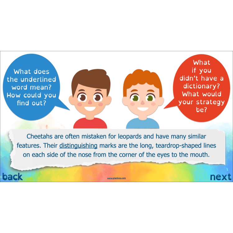 In this initial lesson on non-chronological reports your class will explore some unknown technical vocabulary that is used in non-fiction writing. They will discuss the different strategies they may use to determine the meaning of a word using the context as well as replacing the word with synonymous vocabulary to see if they fit.