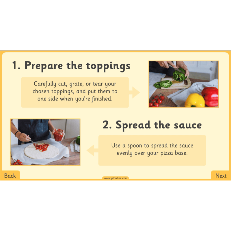 In this practical lesson, after recapping the safe use of equipment for preparing toppings and discussing the steps involved in an order of work, children will make their pizzas according to their designs.