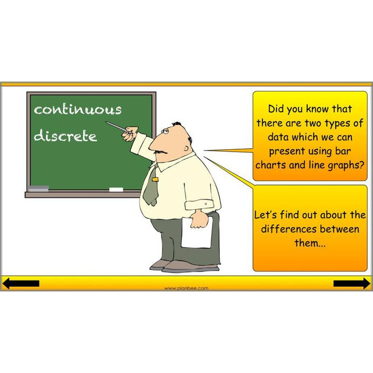 Building on the learning of the previous two lessons in this scheme of work, the included slides explain some differences between continuous and discrete data, giving examples. Children are challenged to not only read and interpret data on line graphs, but predict trends based on the given data. Following this, children may either practise plotting continuous data, or look at unlabelled line graphs, suggesting what kind of data they might show.