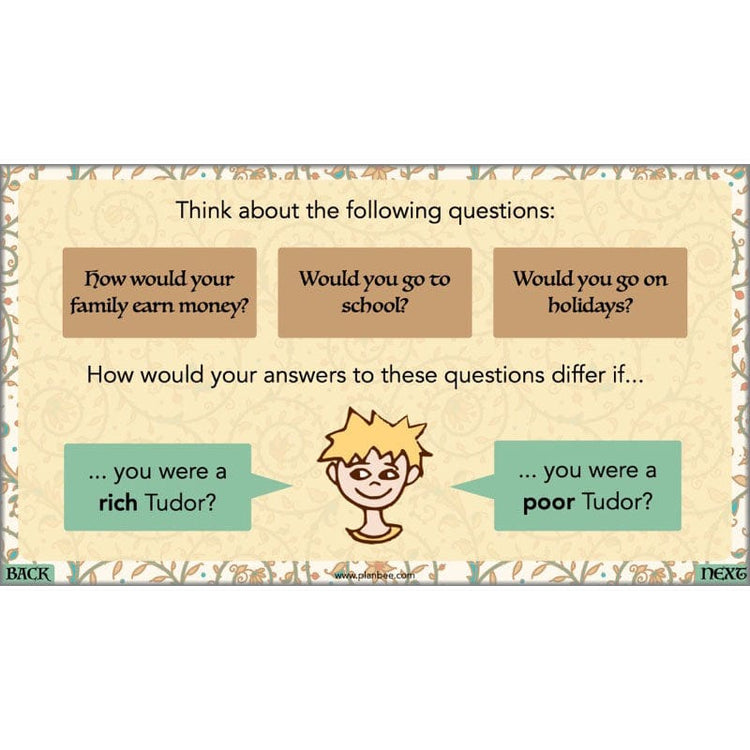 To start this lesson, children will consider what their own family life might have been like if they were living in Tudor times. How would they earn money? Would they go to school? Would they go on holidays? After discussing these questions, children will find out a bit about what family life was like through a series of true or false statements presented on the whole-class slideshow. Through these statements and the subsequent explanations, your KS2 class will start to develop an understanding of Tudor family life for both rich and poor families, including family size, education, leisure activities and marriage.