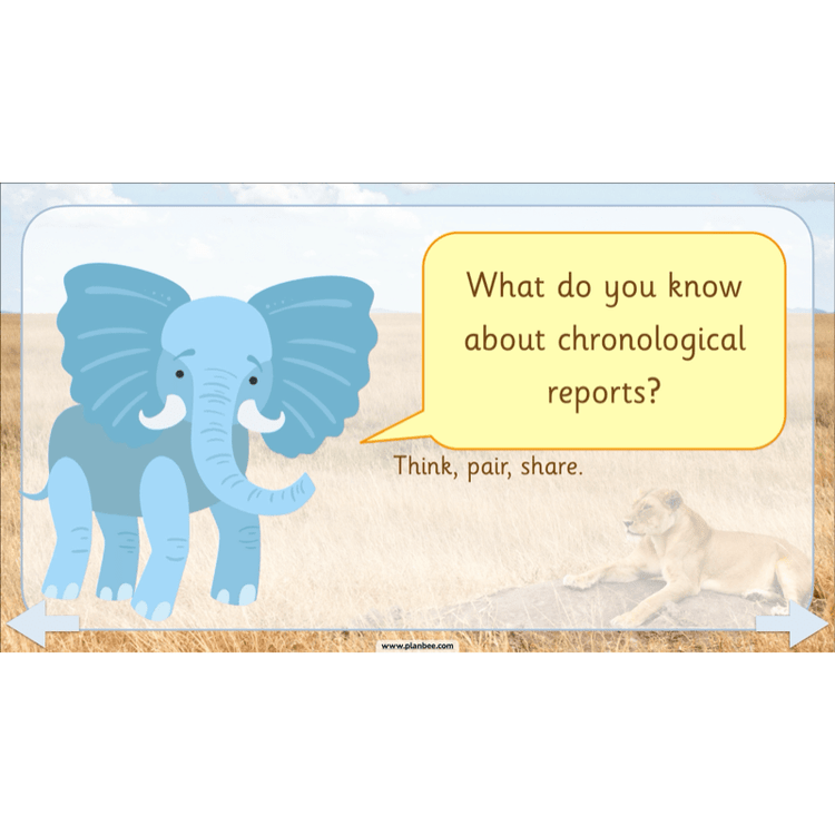 In the final lesson of this African-animals-recount-themed scheme of work, your class will write recounts from picture stimuli. They will generate nouns, verbs and adjectives to describe their pictures and then use these words to help them write recounts from the point of view of the photographer. They will also practice changing verbs to the past tense.