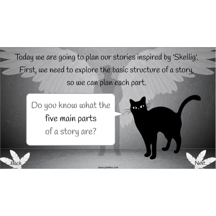 They will then use this structure and their ideas from the previous lesson to plan their own story inspired by David Almond's 'Skellig'.