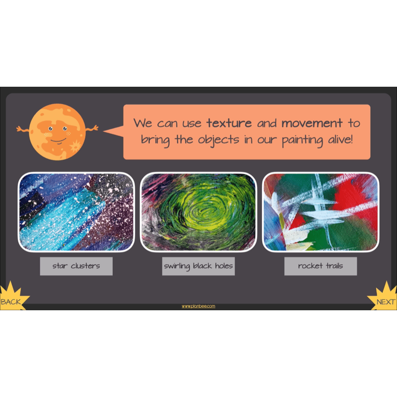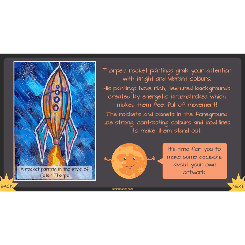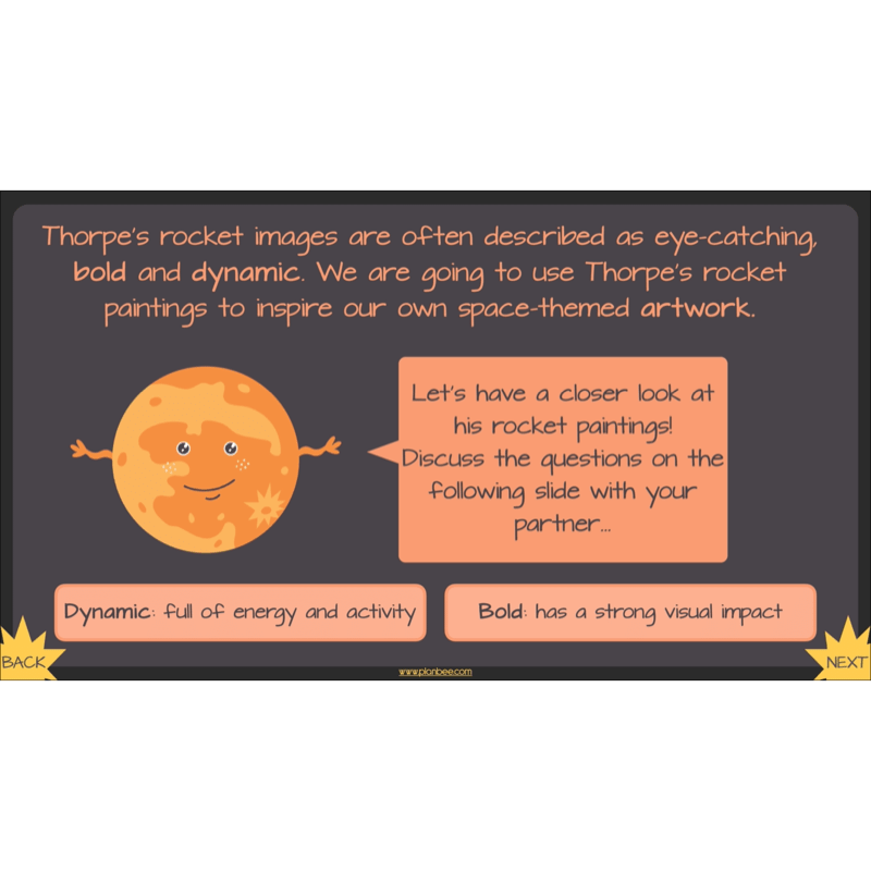 This exciting and immersive Space Art KS2 art unit is perfect for developing children's creativity and confidence while building on prior knowledge and supporting cross-curricular connections! Children will discover how space exploration has inspired historic and contemporary artists such as Alexei Leonov, Lucien Rudaux and Peter Thorpe before applying their understanding to plan and create their own dynamic space-themed artworks.