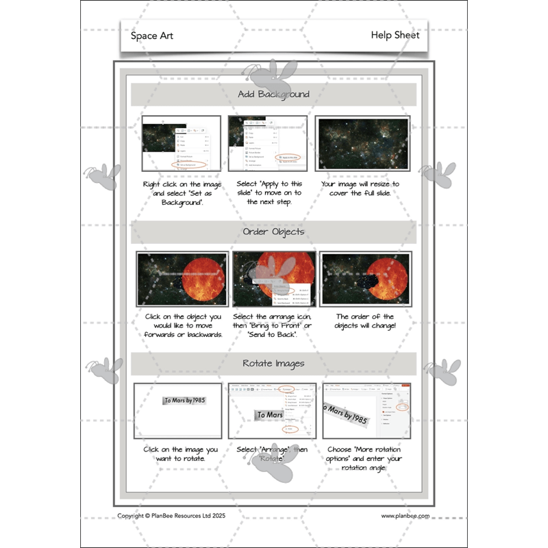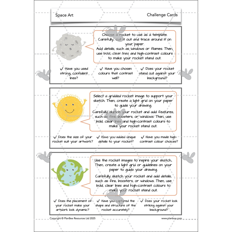 This ready-to-teach Space Art KS2 lesson comes with a detailed plan, a set of PDF slides for the teaching input and a range of printable resources to support your class in their independent learning.