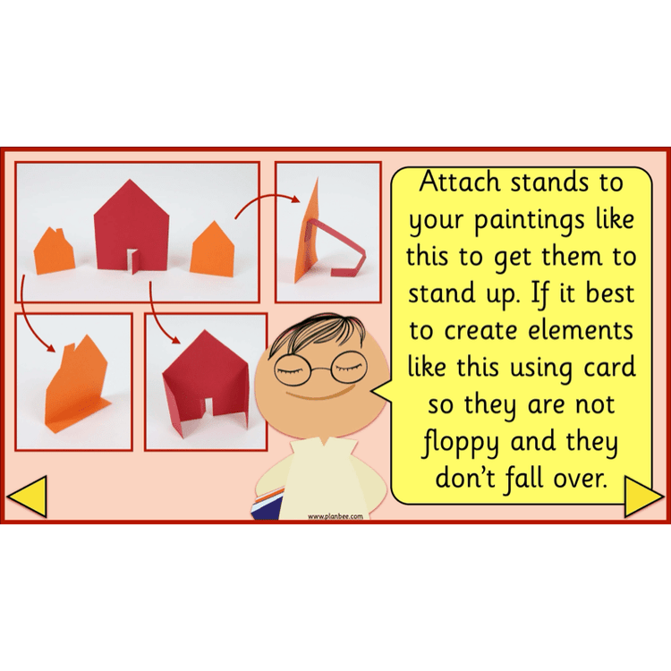 During the third lesson in this ‘Sparks and Flames’ art series of lessons your class will use a variety of materials to create models of buildings. They will make choices about the materials and techniques they use as they add 3-D flames to their buildings.