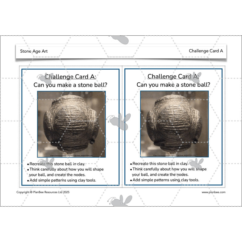 Firstly, your class will explore the mysterious stone balls of the Stone Age, thinking about what they might have been used for and how they might have been carved using only simple tools. They can then have a go at creating their own from clay. Alternatively, they can look at the mysterious Stonehenge before creating some Stonehenge art of their own, using silhouettes and colourful backgrounds. Of course, if you can't decide, you can do both activities over two lessons!