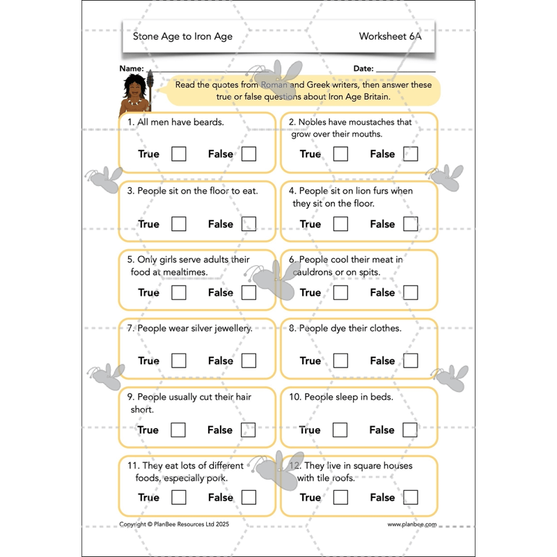 Within this Stone Age to Iron Age KS2 History series are seven detailed lessons plans with a corresponding slideshow for each teaching input, packed full of information, facts and questions to challenge your class's historical enquiry skills. Also included in each lesson are differentiated activity ideas and a range of printable resources, such as worksheets, picture cards, information sheets, challenges and quizzes. All the research and planning has been done for you, so all you need to do is sit back and enjoy learning about prehistoric Britain with your class!