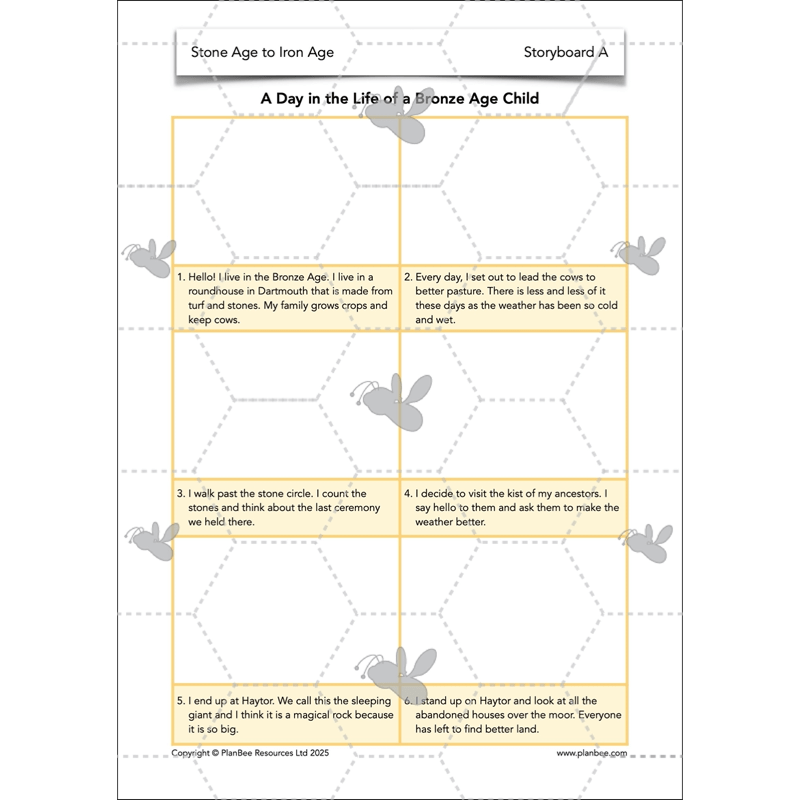 After the slides in the teaching input have given your class some information about the Bronze Age, your children can then explore the life of a Bronze Age sword from mining the metals to being placed in the sacred marsh when its chief owner dies. Alternatively, they can find out what life might have been like for a child living in the Bronze Age.