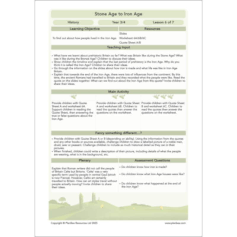 Not only will this Iron Age KS2 lesson plan help your children learn about this fascinating prehistoric era, but it will also help develop their historical enquiry and reasoning skills. And it's all prepared and ready to go!
