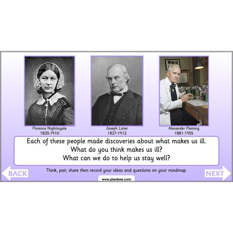 Now that your class has found out about some key scientific discoveries, they will explore how Florence Nightingale and Alexander Fleming accidentally improved our health care. They will either research the importance of hand washing or investigate hand washing through practical activities. To conclude the lesson, your class will learn about Joseph Lister and think about what it would be like if we didn't have sterile surgeries today.