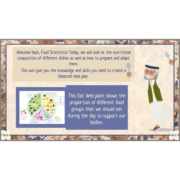 Children draw on everything they have learned to adapt one of the recipes to create the most appealing, flavourful and nutritious dish for the Caliph’s upcoming feast. There is even the option to use an online nutrition calculator so children can see the nutritional impact of their suggested recipe adaptations.