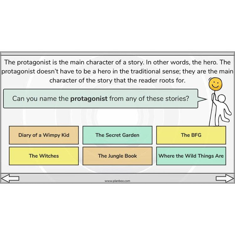 In this Character Profiles KS2 English lesson, your Year 6 class will spend some time developing ideas for the protagonists of their stories. The included slideshow presentation starts by exploring what a protagonist is and identifying the protagonists in a variety of familiar stories. It then goes on to explore ways of creating likeable, believable characters for their stories.