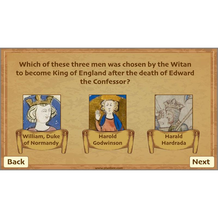 In this first lesson, children find out about the three contenders for the English throne after Edward the Confessor died in 1066. In their independent activities they choose a contender to support, and create a poster, leaflet or speech telling people about why this man should become king. Alternatively, in groups, children act as the Witan, and discuss reasons for and against each man becoming king.