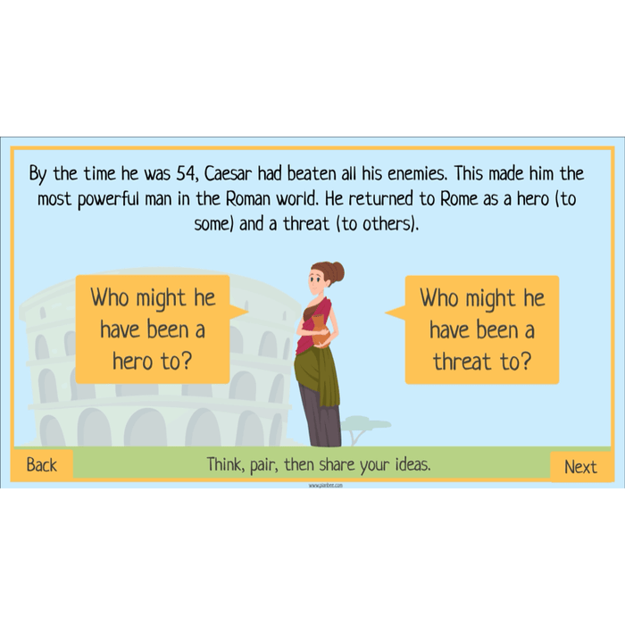 Captivate your KS2 class with this lesson about the life and actions of Julius Caesar, which examines his rise to power and how he is remembered today - as a hero, a villain, or something in between.