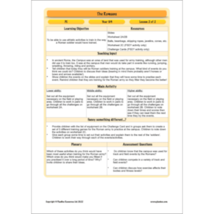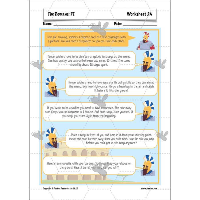 This fun PE lesson provides everything you need to deliver this lesson, including a detailed lesson plan, slideshow and a range of printable resources to help support and challenge your Roman soldiers.