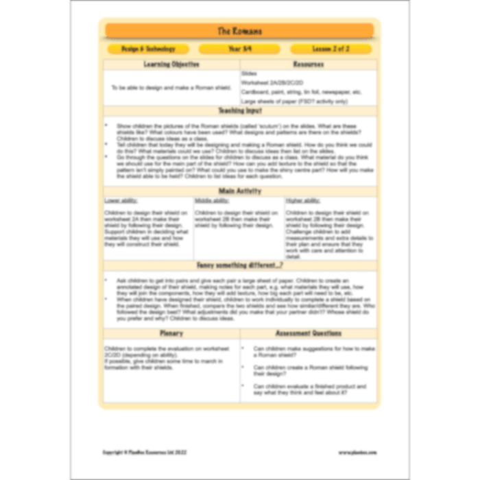 With the lesson plan, slideshow, printable worksheets and other resources all provided, this Roman Shields KS2 lesson will have them making Roman shields in no time!