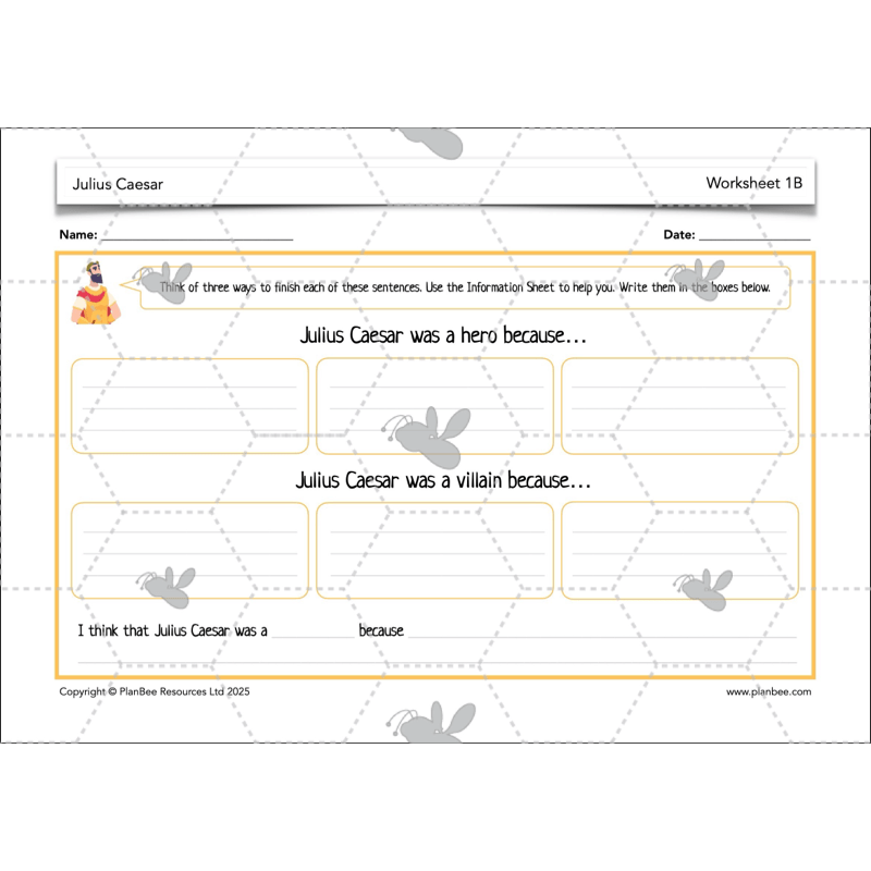 This Julius Caesar KS2 lesson pack contains everything you need for a thought-provoking lesson - a detailed plan, a set of informative and engaging PDF slides for the teaching input, differentiated activity ideas and printable resources to support your class in their independent learning.