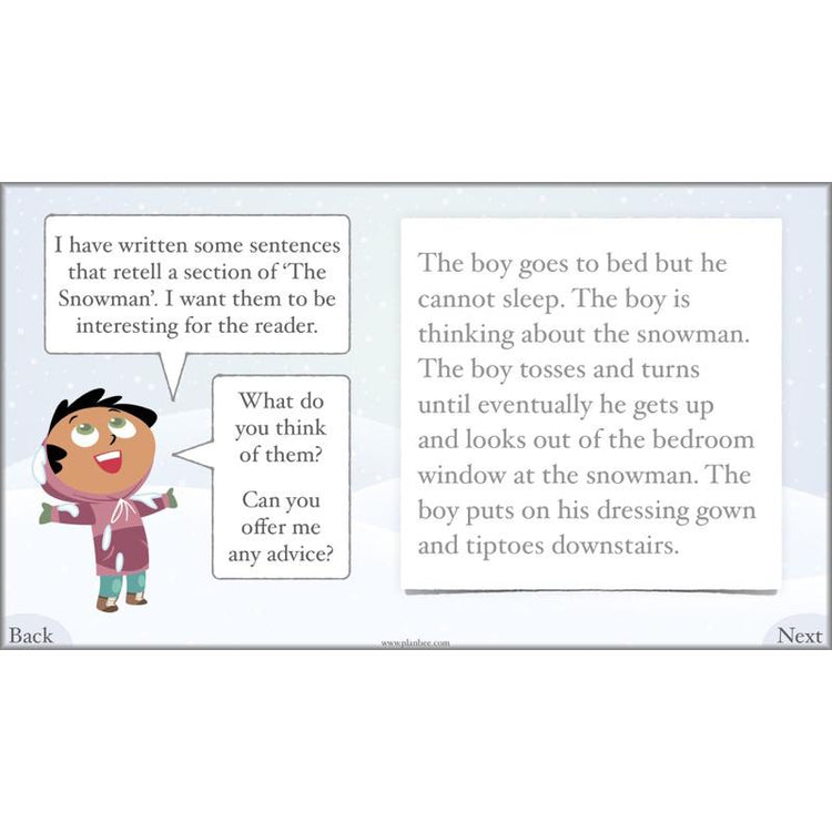 With engaging lesson slides, printable resources and a detailed, differentiated lesson plan, this pack gives you everything you need to help your class write their extra section for 'The Snowman' story.