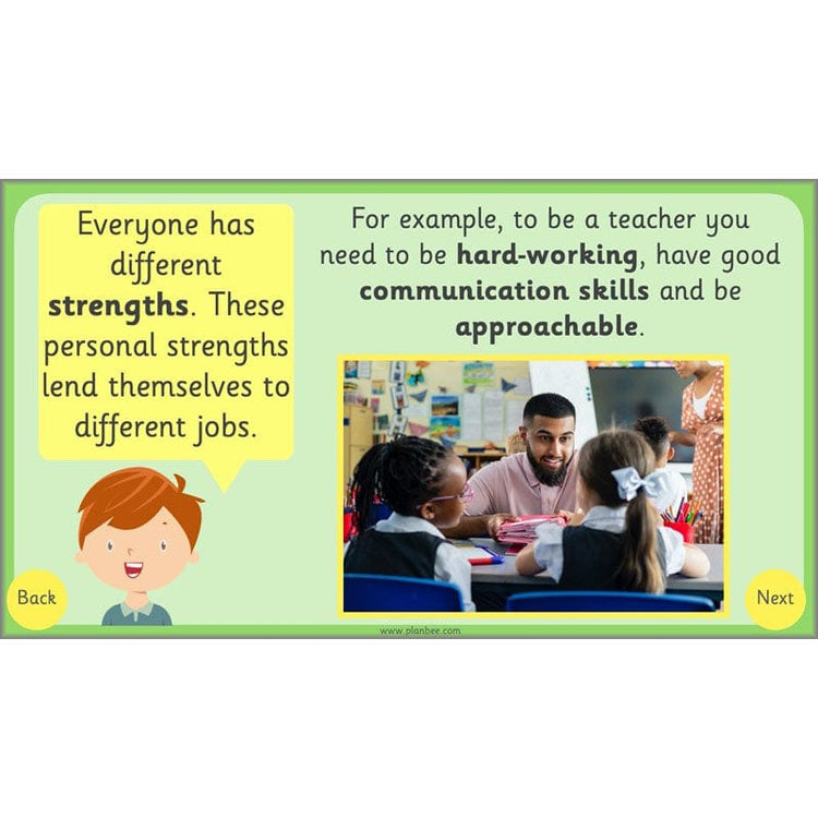 This pack contains everything you need to teach this lesson about strengths and interests including a detailed lesson plan with differentiated activities, an interactive slideshow, and all the printable resources required.