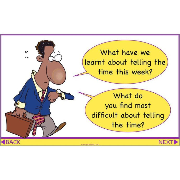 In this, the final lesson of five in the 'Time' Complete Series, children are tasked with helping some confused characters work out where they are going wrong with telling the time on an analogue clock. Through each problem on the slides, they will have the chance to express their understanding. This lesson is ideal for helping to clear up any misconceptions for those children who may not yet be confident in telling the time. There is also a handy quiz to recap learning throughout the week.