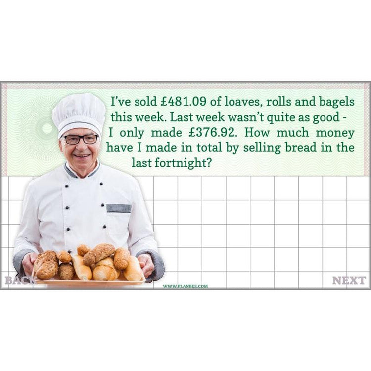 Now it's time to apply everything that's been learned about working with money! A number of word problems are shown in the included slides, where children must select appropriate methods for adding, subtracting, multiplying or dividing money. After that, there's a choice of two, differentiated activities for your class to undertake – during which they'll work with some real data about family spending in different regions of the UK.